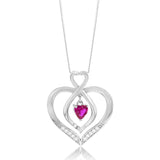 Sterling Silver Rhodium Plated White CZ And Created Ruby Infinity On Heart Pendant
