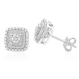 Sterling Silver With 2 Diamond Cushion Shape Earring Stud