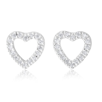 Sterling Silver Zirconia Open Heart Stud Earrings