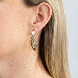 Yellow Gold Plated Sterling Silver Verticle Feather Drop Earrings